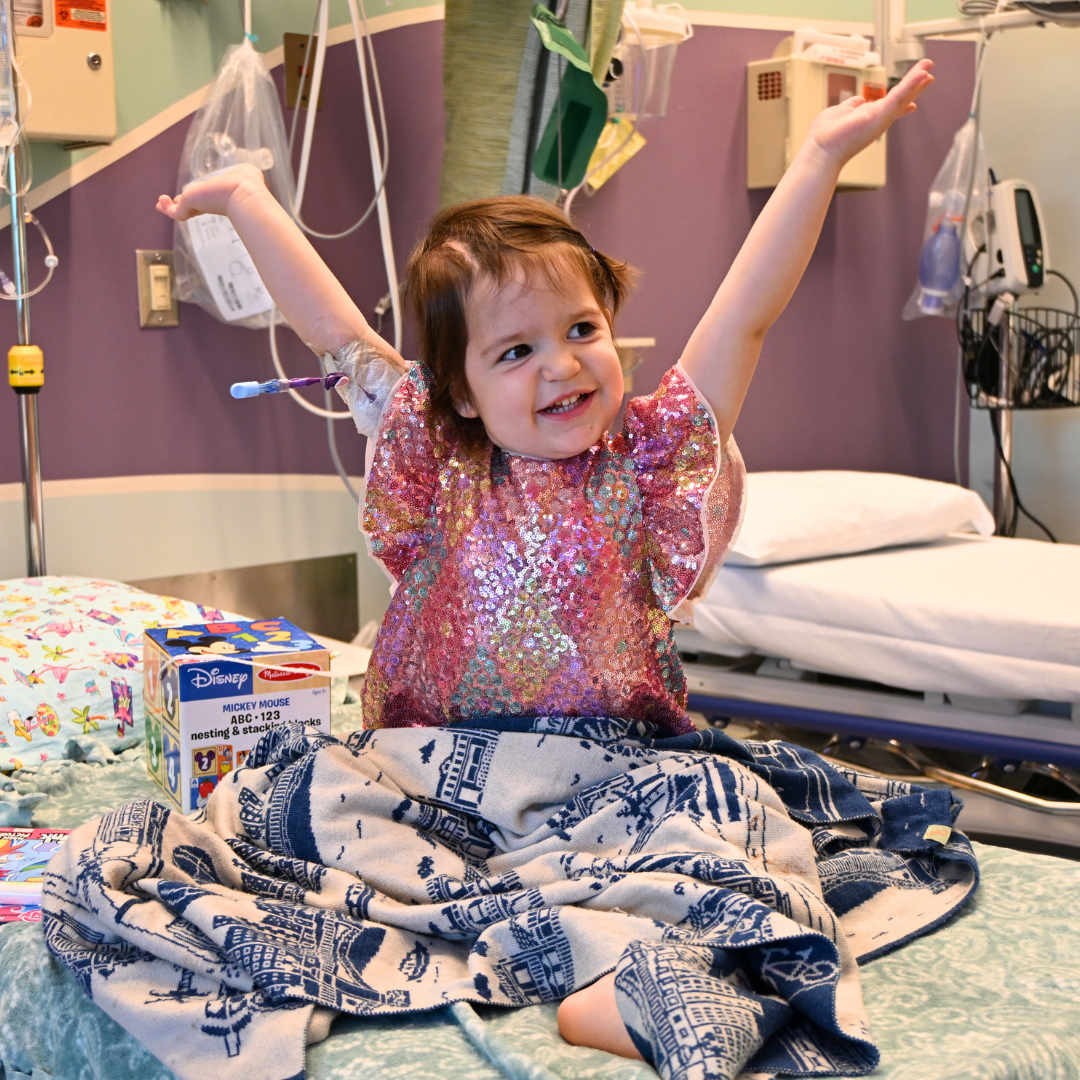While Emily experienced some hair loss at the radiation site, it has started to grow back. She's now back to doing everything she loves, including attending daycare one day a week with no limitations, where she blends in with the other children just like any typical three-year-old.