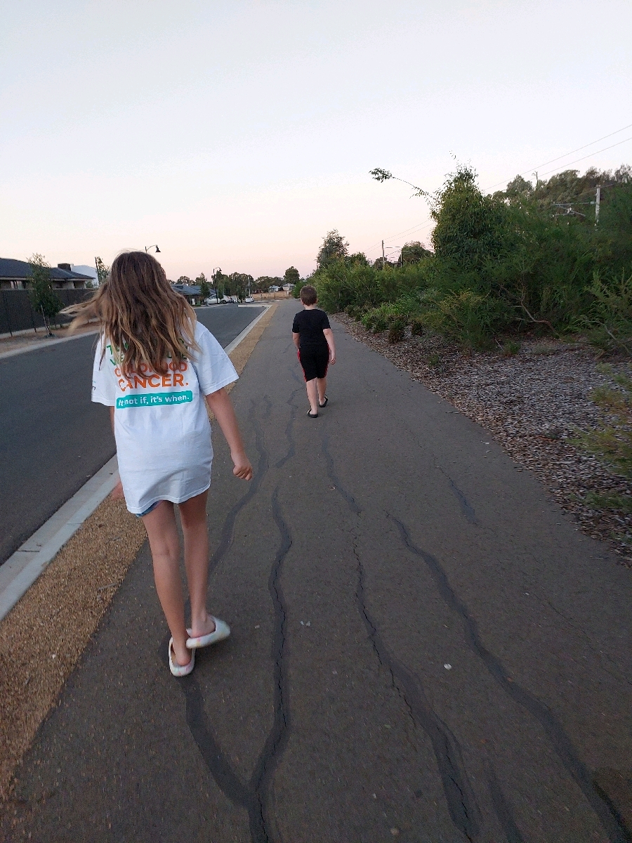 Attempting to get walk in my children decided to join me . my daughter wore my top. 2km together, plus half km earlier in day when took my son and his friend to park 12 mins walking the paths in it 3 times in 12 minutes . didnt have my phone so didnt use app to log owell. was a great time with the kids and first time not hearing son complain about walking.