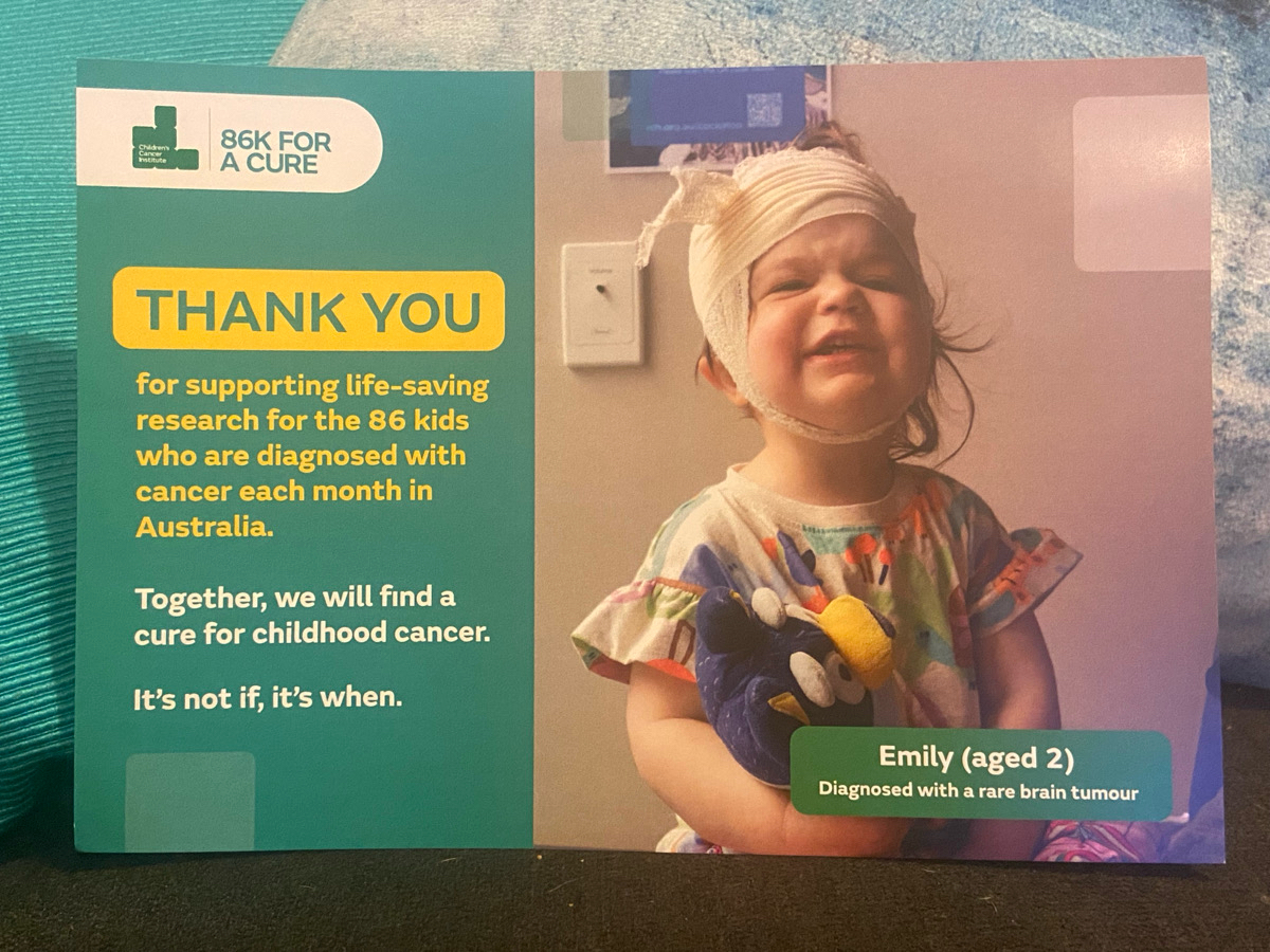 So I am conquering this challenge for the 86 children who are diagnosed with cancer each month.
